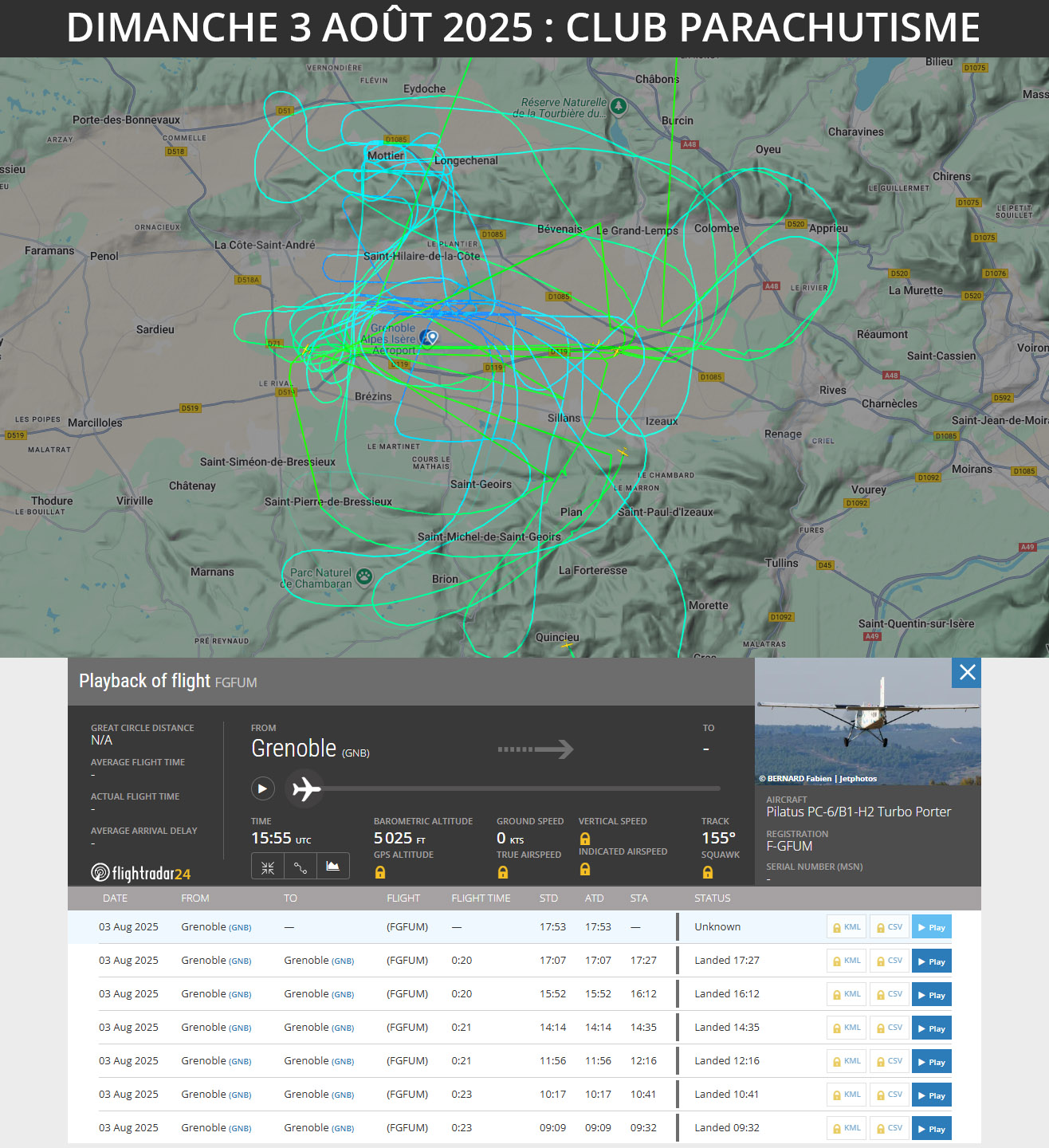 Et les nuisances ont fini vers 19h50 lorsqu’un avion de l’Enac F-GGNS est arrivé. L’Enac avait pourtant dit que ses avions ne volaient pas le dimanche… Force est de constater que ce n’est pas tout le temps vrai…