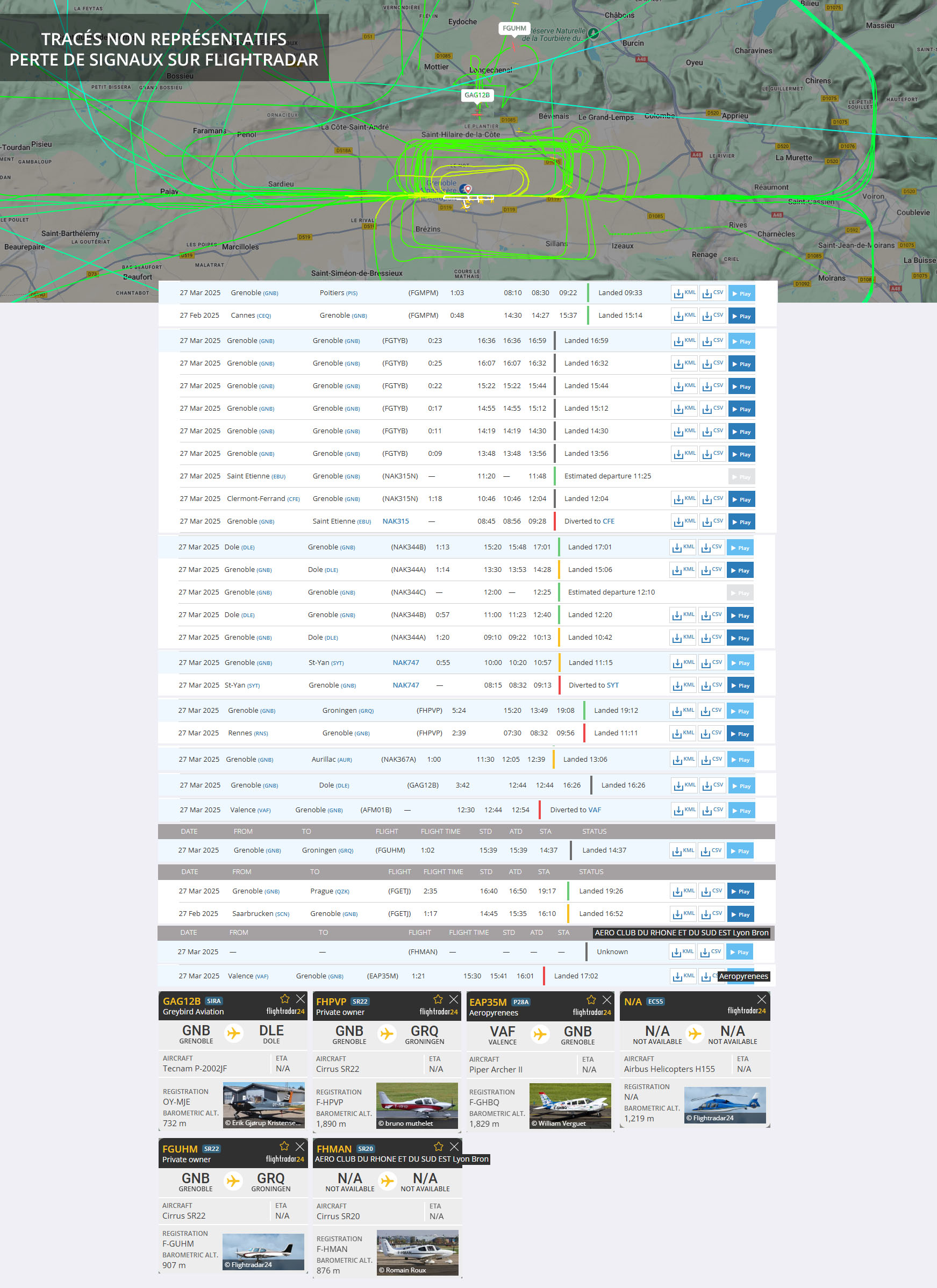 Et des tours de piste le soir du F-HMAN (aéroclub situé à Bron : est-ce dû aux restrictions qu’il y a à Bron ? Car si les avions de Bron viennent faire leurs tours de piste à Saint Etienne de Saint Geoirs à cause des restrictions qu’ils ont sur leur aéroport, il y a un sérieux problème). Nous n’avons pas à subir les nuisances des aéroclubs extérieurs, nous subissons déjà assez !