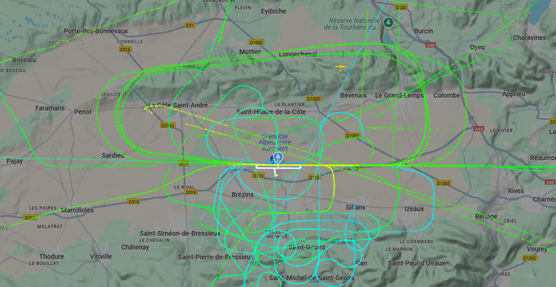 Un jour férié bruyant à partir de 11h20. Des tours de piste de la Pan Européenne le midi vraiment ? C’est l’anarchie, tout le monde fait ce qu’il veut quand il veut, c’est absurde et ça ne peut pas durer. Visuel non représentatif de la réalité, perte fréquente de signaux et vols non visibles sur Flightradar.