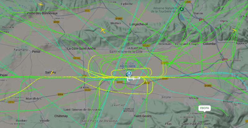 Des nuisances toute la journée, ce n’est pas normal de vivre ça quotidiennement. Des passages sur les hauteurs, des tours de piste de l’Enac (dont des nombreux tours de piste non visibles sur Flightradar comme ceux de l’avion F-GMQI), d’avions non visibles, d’avions extérieurs et des boucles également de l’Enac (F-GMQB), non visibles sur Flightradar.