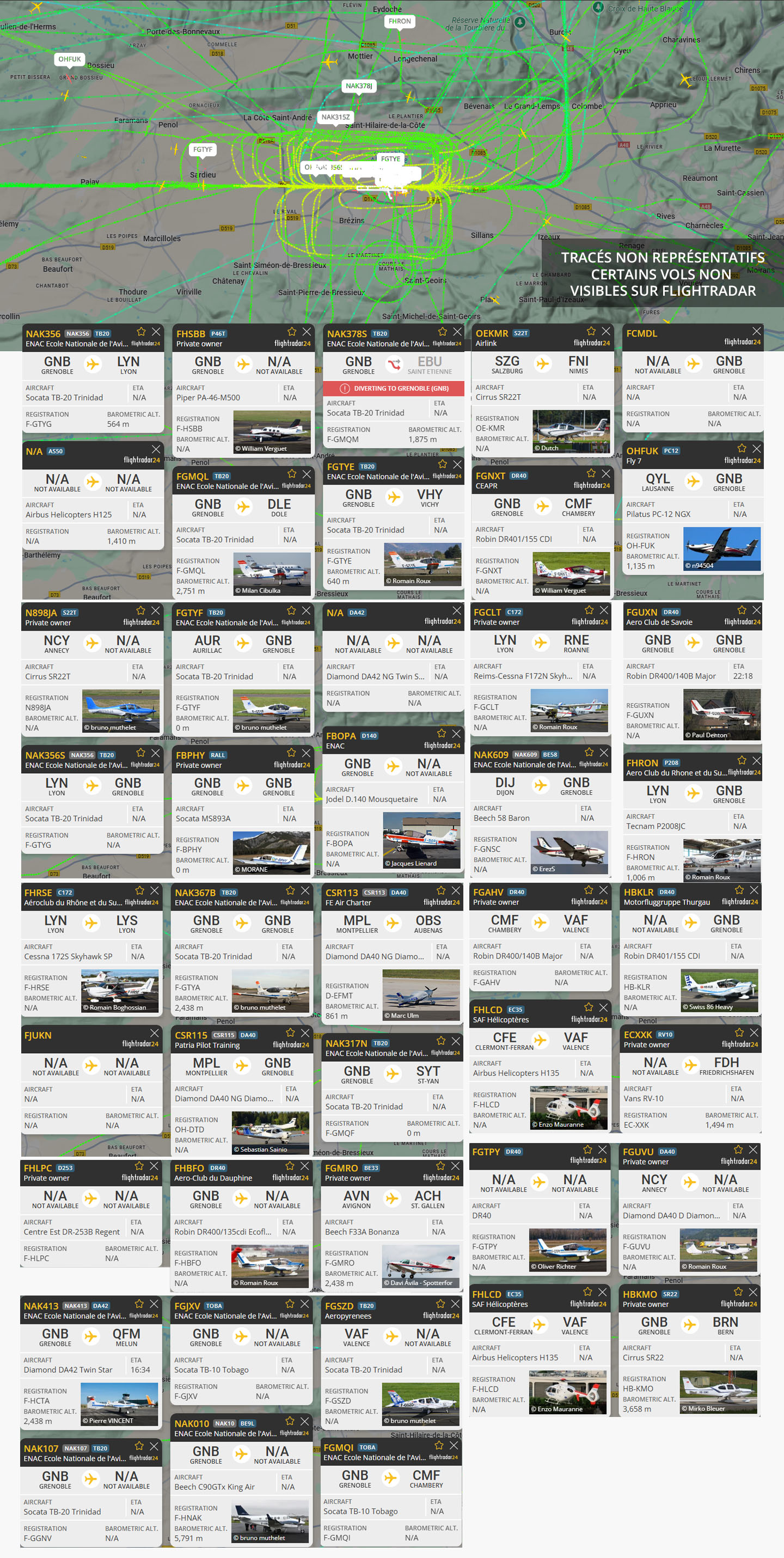 Des nuisances toute la journée : matin, midi, après-midi et la nuit. Tours de piste (comme d’habitude de l’ENAC et notamment le HO-FUK Fly7 de Lausanne, bruit insupportable !!!), vols à basse altitude, passages sur les hauteurs. À partir de 15h, nous avons assisté à un meeting aérien, il y avait tellement de bruit : entre les décollages, les atterrissages, les tours de piste, c’était l’enfer. Le soir nous avons eu le droit à la visite de l’aéroclub de Savoie F-GUXN (20h50 – 21h40), l’aéroclub du Rhône et du Sud-Est à (23h – 23h30) pour quelques tours de piste… Pour information, la qualité de l’air était toujours dégradée ce jour là…