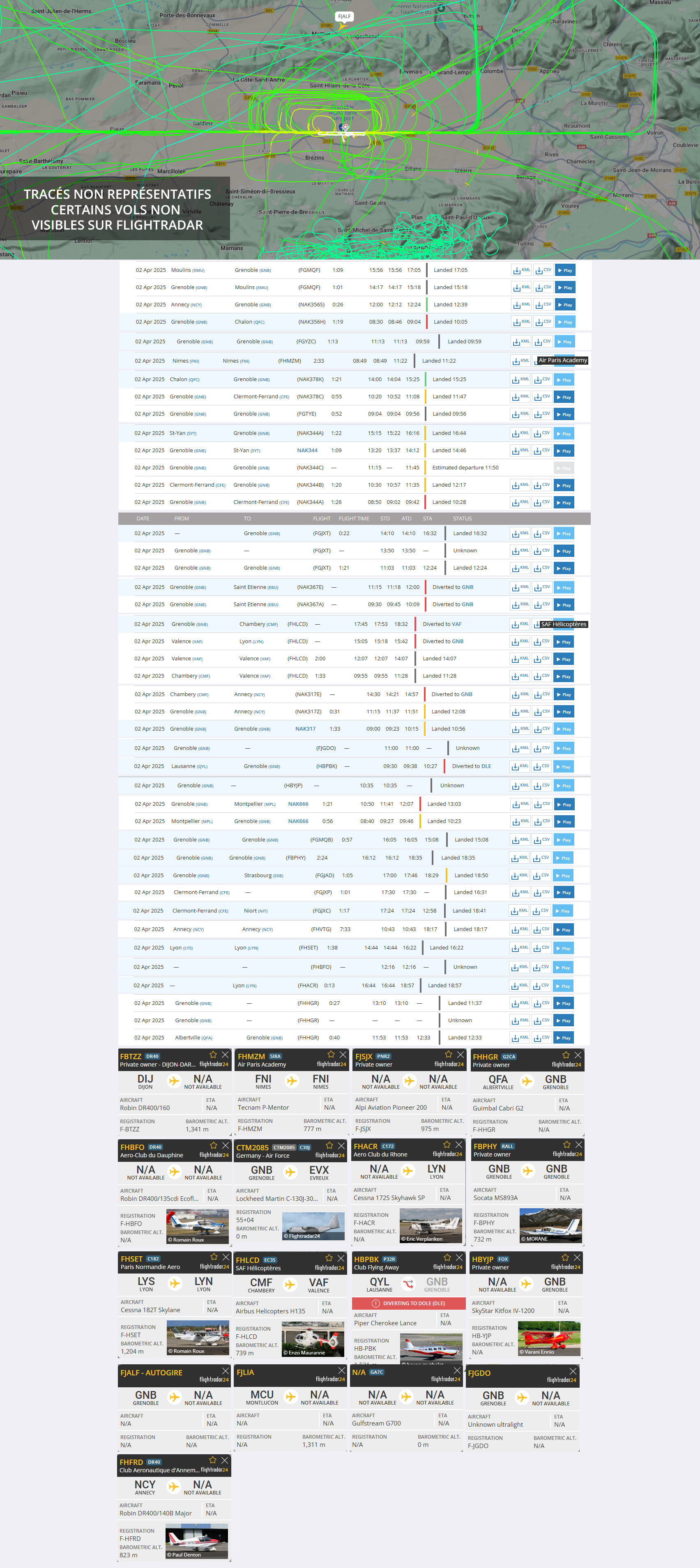 Des nuisances toute la journée : vols à basse altitude, nombreux passages sur les hauteurs, tours de piste. Encore le même hélicoptère qui vient faire des entrainements (F-HLCD), l’autogire, des avions d’écoles et aéroclubs extérieurs + les activités habituelles de l’aéroport : l’Enac, l’aéroclub du Dauphiné, vols privés + commerciaux (avions + hélicoptères). On vit un enfer, aucune réaction des élus, aucunes réponses, aucunes restrictions… Une indifférence totale, c’est une honte…