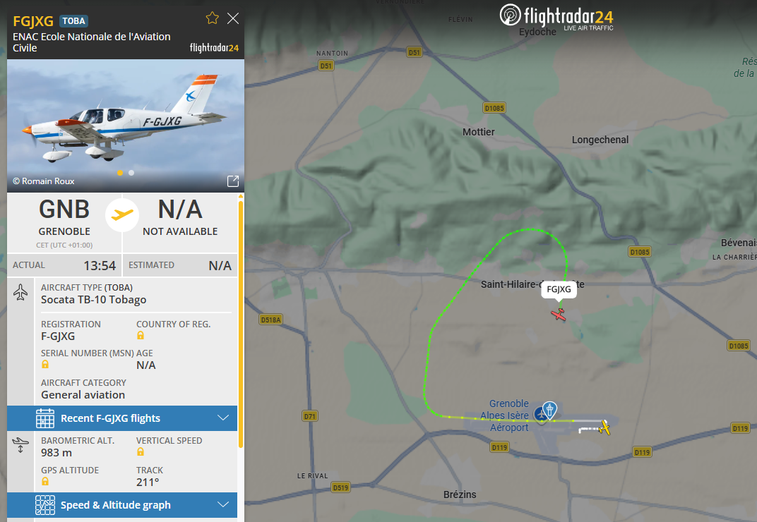 Des nuisances tout au long de la journée, surtout l’après-midi. Des tours de piste (dont des tours de piste non visibles sur Flightradar) et des passages sur les hauteurs de l’Enac, des tours de piste d’un Dassault Falcon, des nuisances d’avions non visibles, de jets et d’avions en approche sur Lyon.