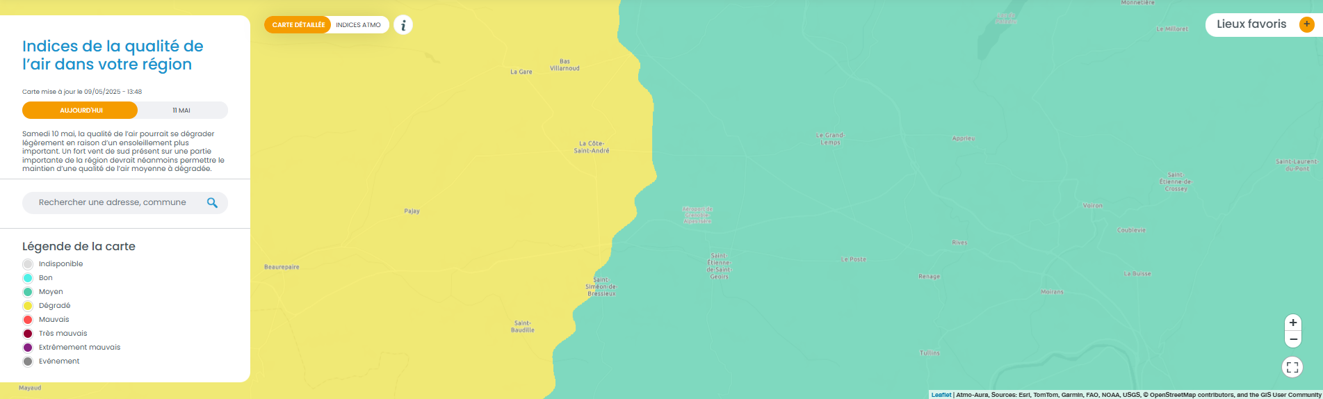 Qualité de l’air du jour : « Moyen / Dégradé »