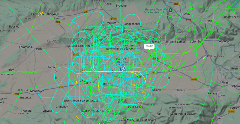 Voici les trajectoires de l’avion de parachutisme de la journée : l’anarchie !