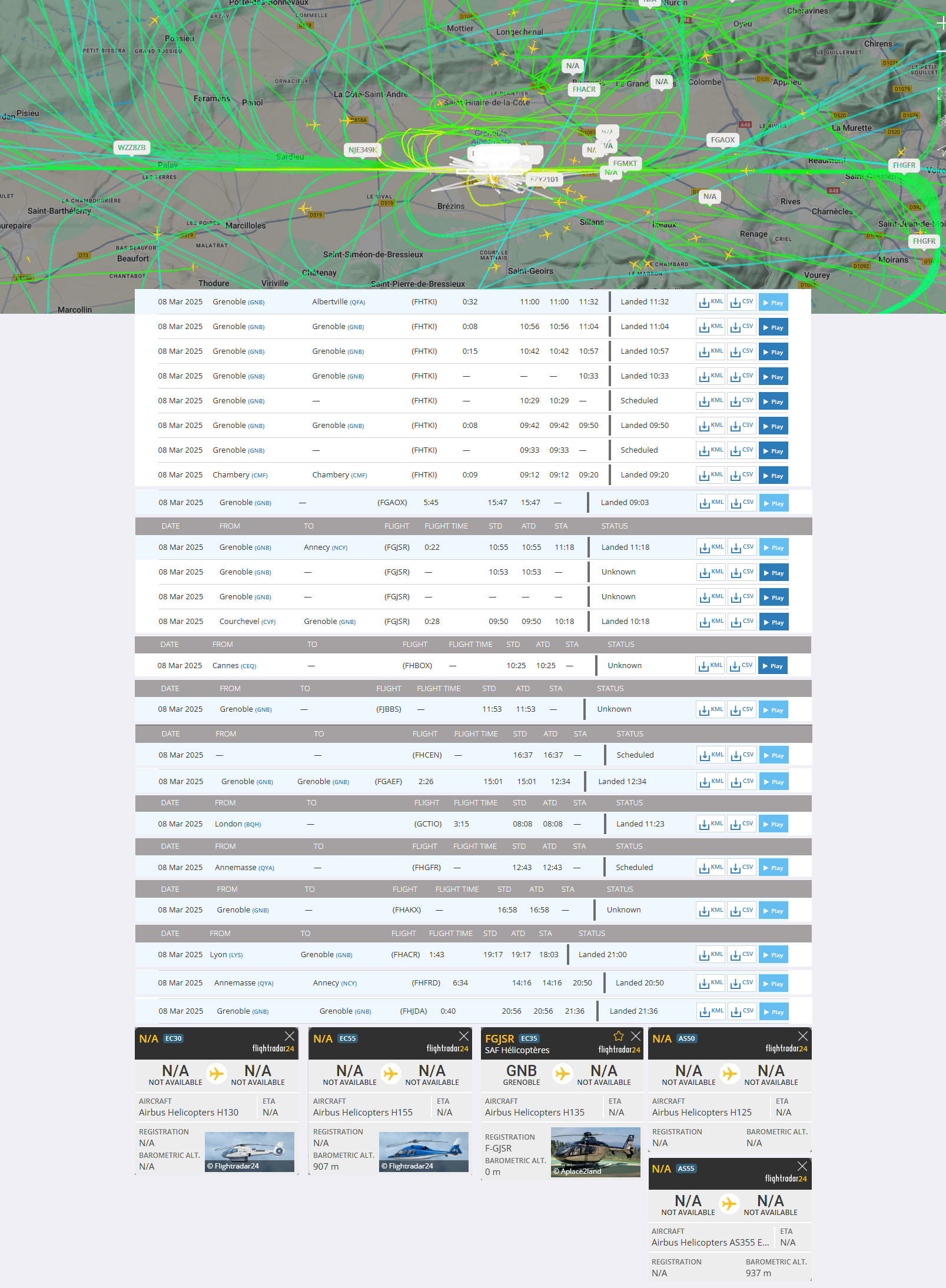 Un samedi très bruyant ! Le matin a commencé avec des tours de piste d’hélicoptère, grande première ! Certes, c’était le Samu, mais il est venu uniquement faire des tours de piste, qui se rajoutent à tous les tours de piste que nous subissons depuis septembre 2024 maintenant. De très nombreux hélicoptères, de très nombreux passages sur les Hauteurs de Saint Hilaire de la Côte, comme d’habitude : aéroclub d’Annemasse, AGIR, aéroclub du Dauphiné… Et nous avons eu le droit à des tours de piste le soir également, comme d’habitude depuis un certain temps (dont l’aéroclub d’Annemasse : ils viennent uniquement faire des tours de piste et repartent). Des nuisances jusqu’à 21h.