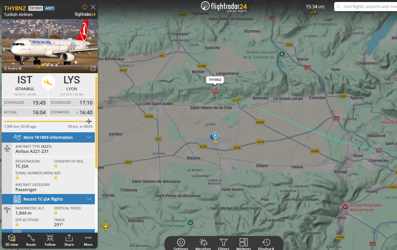 Moins de tours de piste que les jours précédents, donc moins de nuisances, mais des nuisances tout de même : tours de piste (Enac), nuisances d’avions basés et non basés, d’avions non visibles sur Flightradar, d’hélicoptères dont certains non visibles également, d’avions en approche sur Lyon (dont 1 passage très bas et 1 autre qui a sorti les volets au dessus de nos têtes), de jets, d’avions commerciaux, d’Oyonnair et d’avions militaires.
