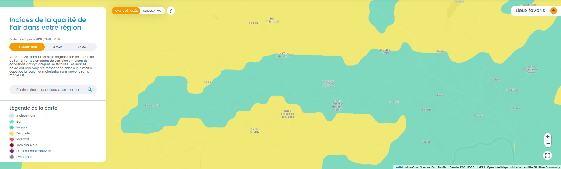 Qualité de l’air du jour : « Moyen / Dégradé »